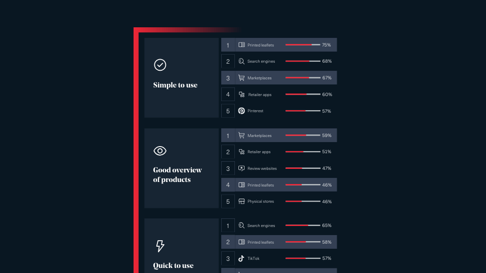 Portanto, apesar da crescente mudança dos canais offline para os digitais pelos varejistas, os resultados mostram que os compradores de hoje ainda têm catálogos e folhetos impressos profundamente enraizados em sua jornada de compra.